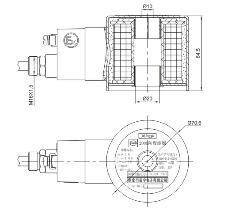 此款产品是20孔径适用于二位二通大口径防爆电磁阀线圈。